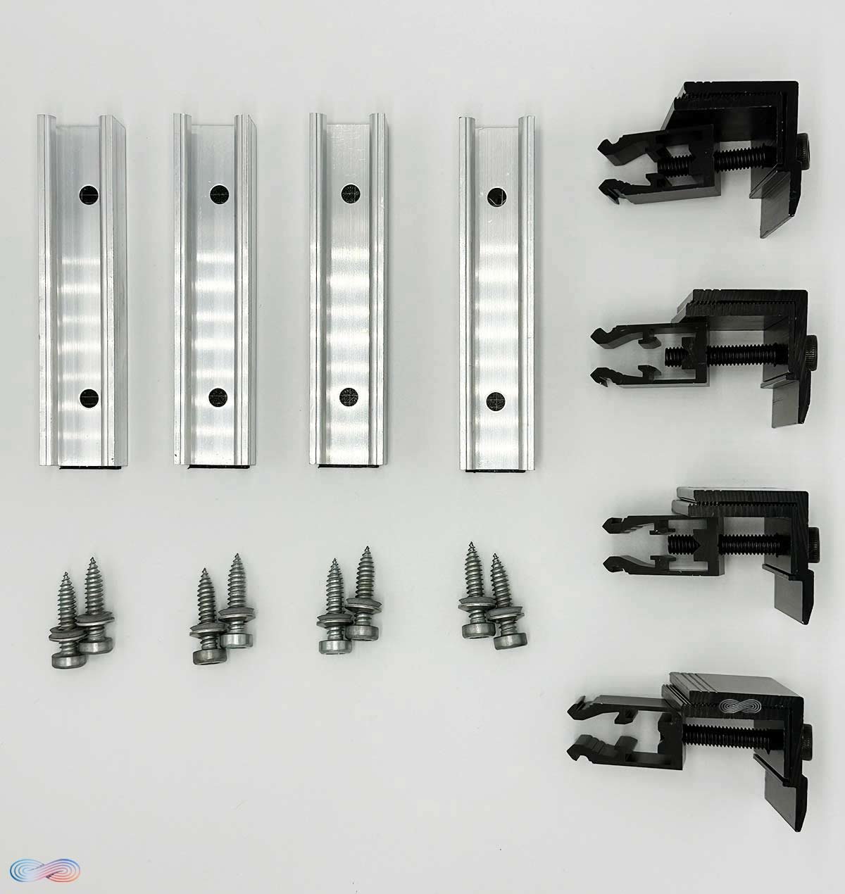 Trapezblech Befestigungs-Set für ein Solarmodul Montagesystem für ein Solarpanel auf Dächern mit Trapezblech. Für gerahmte PV-Module mit einer Rahmenhöhe von 30 bis 40 mm. Im Lieferumfang enthalten: 4x Grundschiene 1/15 für Trapez komplett L=10cm, alufarben 4x Endhalter Rahmenhöhe 30-40mm, schwarz 8x Dünnblechschraube JF3-ZT-2-5,5×25-E11/A2″”